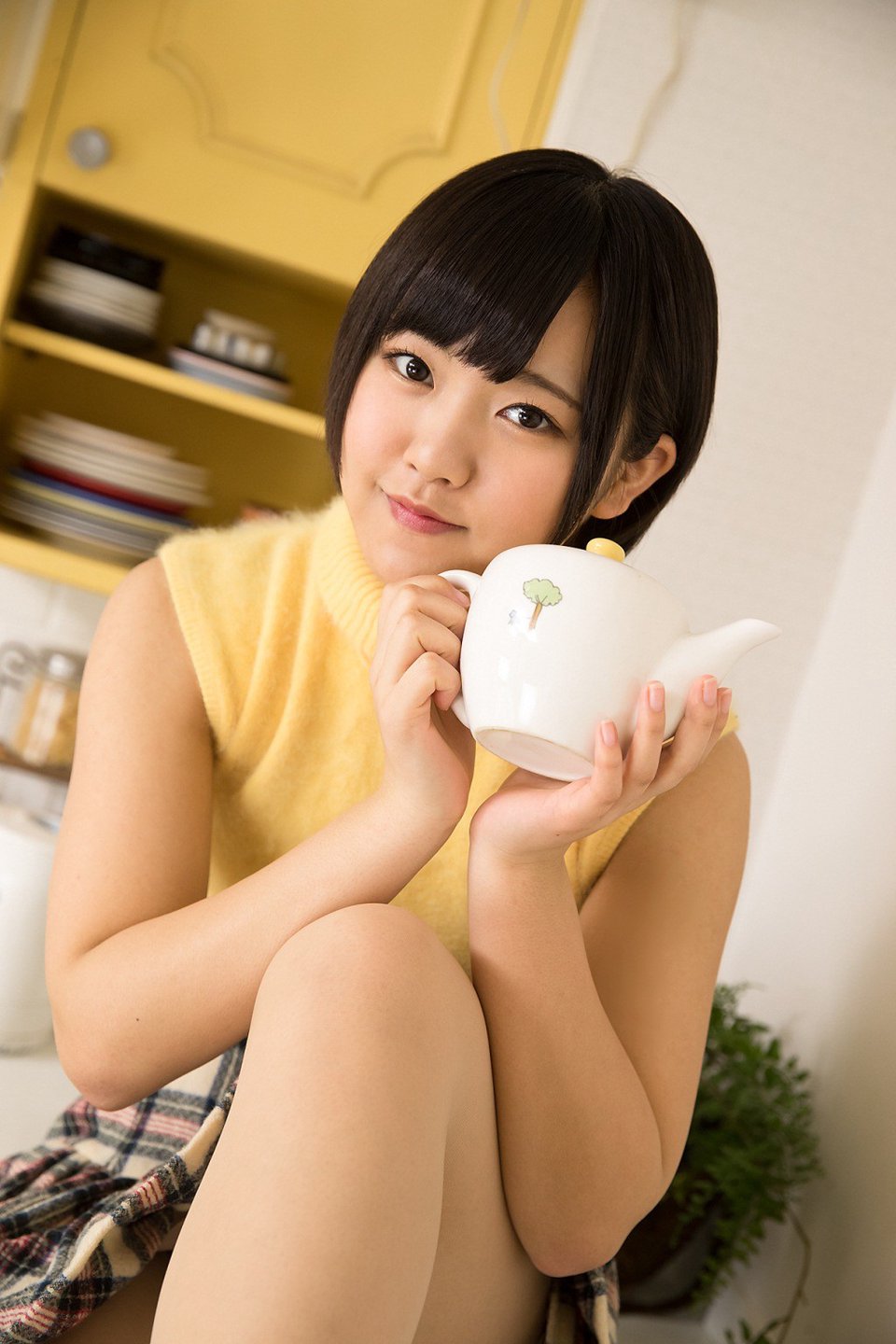 短髮餐饮少女艷红内衣厨房私拍 香月杏珠 (35P)